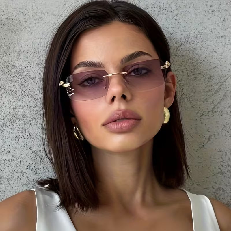 Upgrade your look with unisex vintage tinted sunglasses featuring a sleek rectangular rimless design. Lightweight, stylish, and perfect for parties, daily wear, travel, and driving. Fashion-forward eyewear with UV400 lenses.