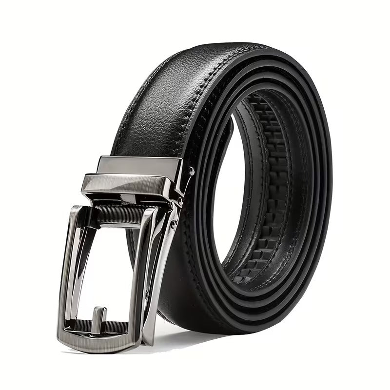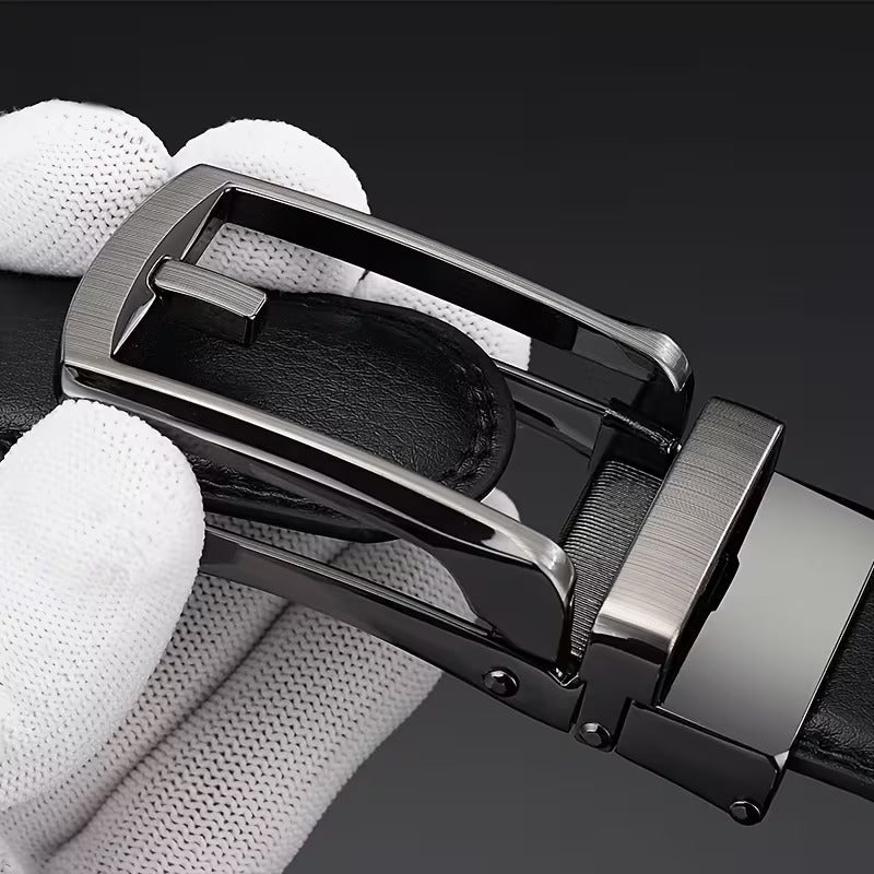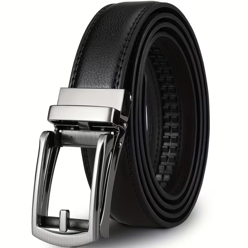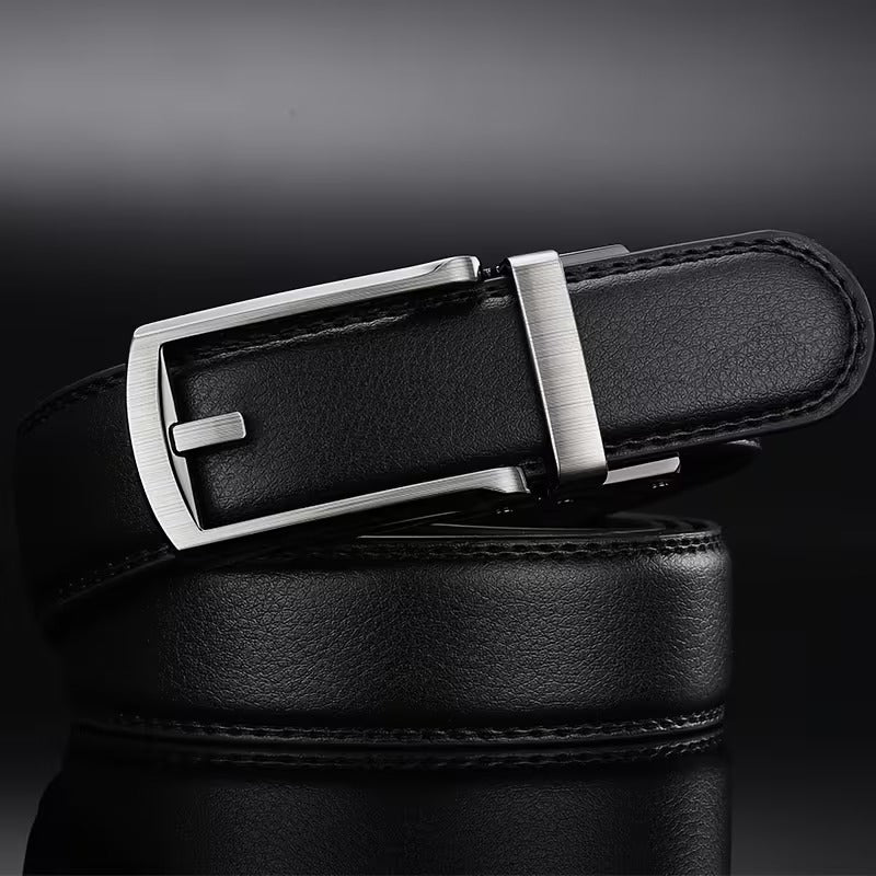 Luxury Automatic Buckle Men’s Faux Leather Belt – Double-Layer Black Designer Waist Belt for Casual & Smart Wear