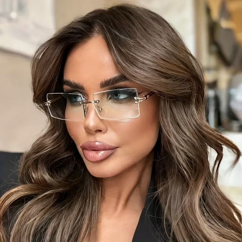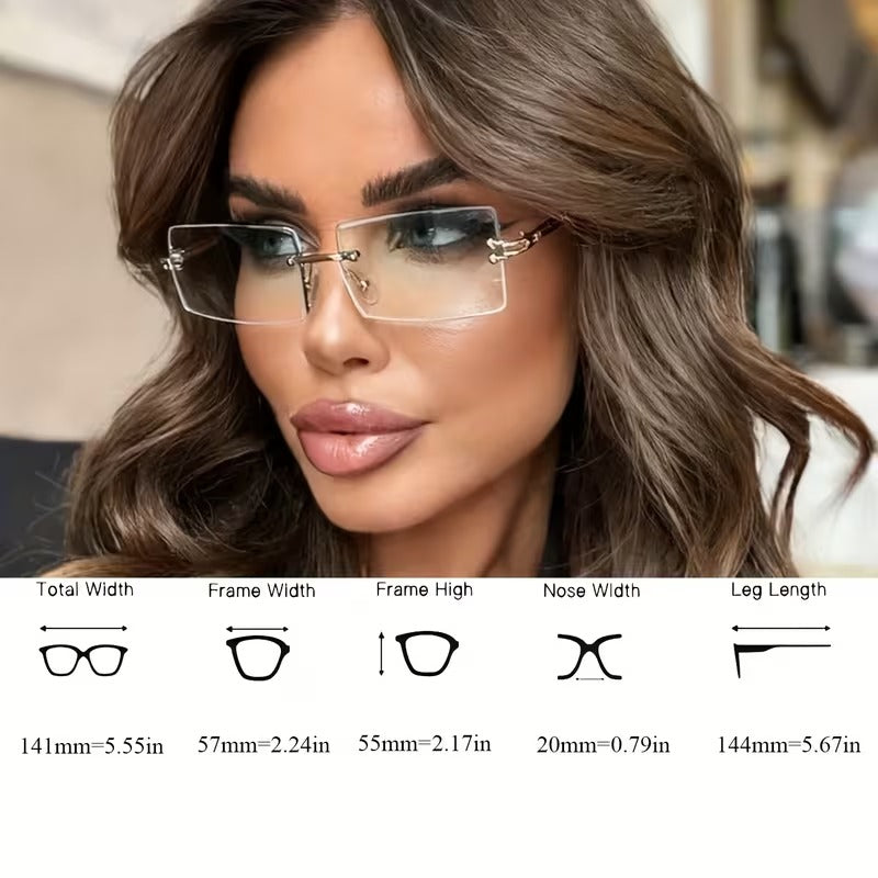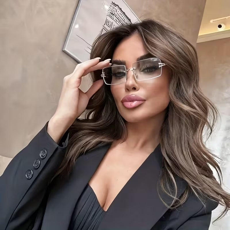Upgrade your everyday style with EdgeLite rimless rectangular glasses. Lightweight metal frame with clear decorative lenses, perfect for office, formal wear, and street-style looks for men and women.